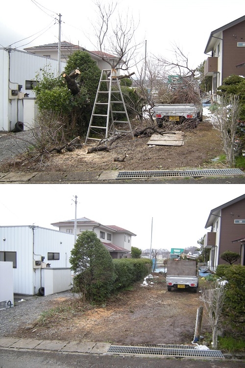 あいにく、敷地境界線フェンス沿いにあり、且つ施主様の敷地でかなり細かく捌かないと搬出が容易でありません。